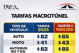 Actualización de sus tarifas 2026 para Macrotúnel Acapulco