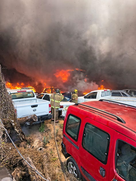 Refuerzan acciones de sofocación en incendio de corralón en Acapulco; avance del 50% en control del siniestro